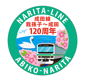 今年は、開通から120周年記念の年となります。120周年を記念し、我孫子駅の4番線ホームから、午前10時47分発成田駅行の列車に、記念のヘッドマークを付けた記念列車が走りました。